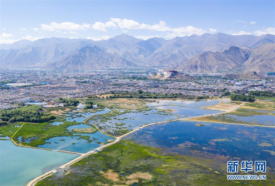 西藏拉鲁湿地风光(6月5日无人机拍摄)。新华社记者 普布扎西 摄