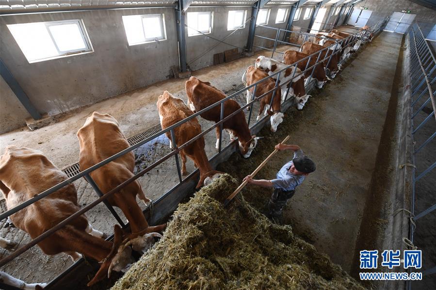 一名牧民在新疆阿勒泰地区青河县阿格达拉镇扶贫搬迁养殖区工作(8月9日摄)。 新华社记者 沙达提 摄