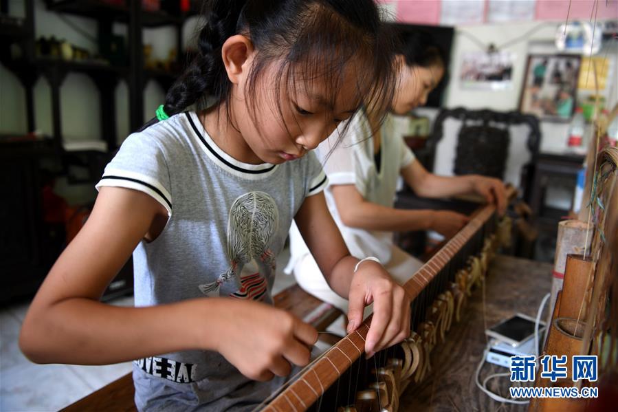 8月15日,在泾县丁家桥镇小岭村,放暑假的孩子和家人一起做宣纸帘。 新华社记者 刘军喜 摄