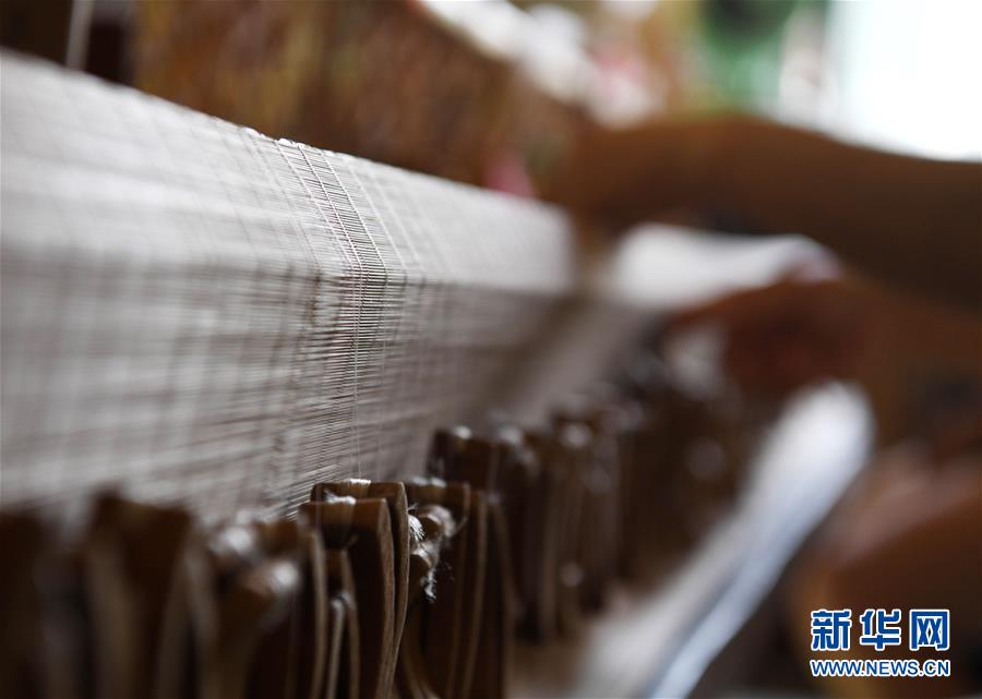 8月15日,泾县丁家桥镇小岭村村民在编宣纸帘。 新华社记者 刘军喜 摄