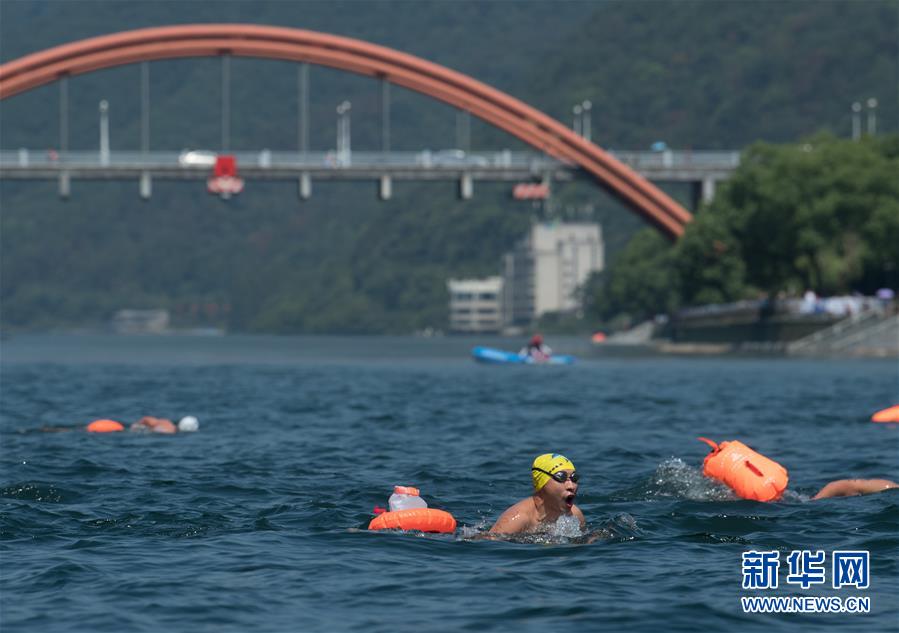 人们在新安江上参加游泳比赛(2018年7月28日摄)。新华社记者 翁忻旸 摄