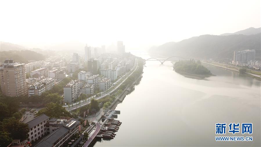 俯瞰浙江建德城区,新安江穿城而过(8月14日无人机拍摄)。新华社记者 翁忻旸 摄