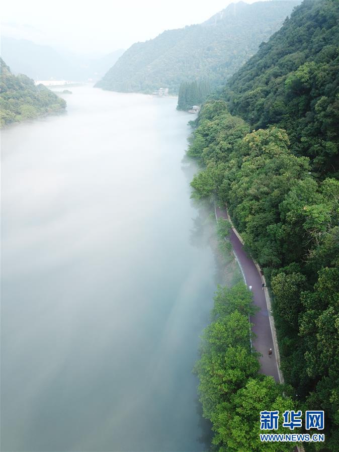 8月14日,市民在新安江畔的绿道上晨练。新华社记者 翁忻旸 摄