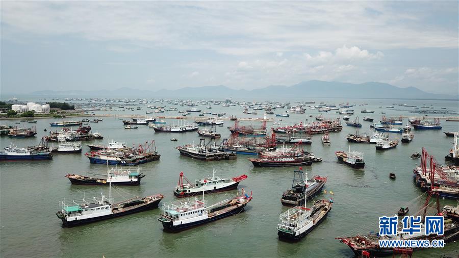 渔港里的渔船准备出海(8月16日无人机拍摄)。 8月15日至16日,第17届南海(阳江)开渔节于在广东阳江海陵岛举行。今年的南海休渔期也在16日正式结束,这一天,渔民们再次开始了在渔船上的辛勤劳作,向广阔的大海进发。 新华社记者 周自扬 摄