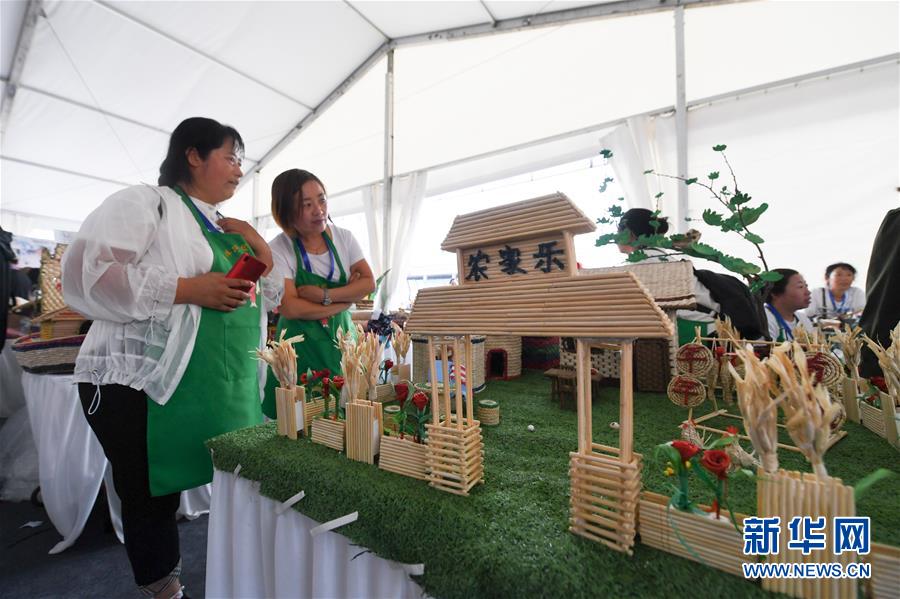 这是8月16日拍摄的草编作品。 当日,2019年吉林省暨长春市“吉林巧姐”草编大赛在长春农博园开赛,来自全省的300余名选手同台竞技。 新华社记者张楠摄