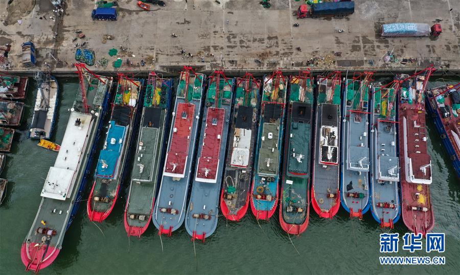 8月16日,广西钦州市龙门港内远洋捕鱼船整装待发(无人机拍摄)。 当日,历经三个半月的休渔期结束,广西北部湾正式开海。 新华社记者 张爱林 摄