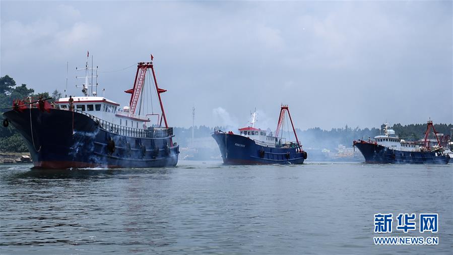 8月16日开海后,捕鱼船驶离广西钦州市龙门港。 新华社记者 张爱林 摄