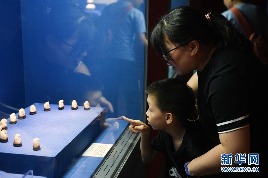 8月16日晚,在安徽博物院新馆内,观众参观“故宫养心殿文物精品展”。 为进一步丰富公众夜间文化生活,7月24日至8月30日期间的每个周五,位于安徽省合肥市的安徽博物院新馆开展夜间延时服务,参观时间延长至夜间21时。 新华社记者 张端 摄