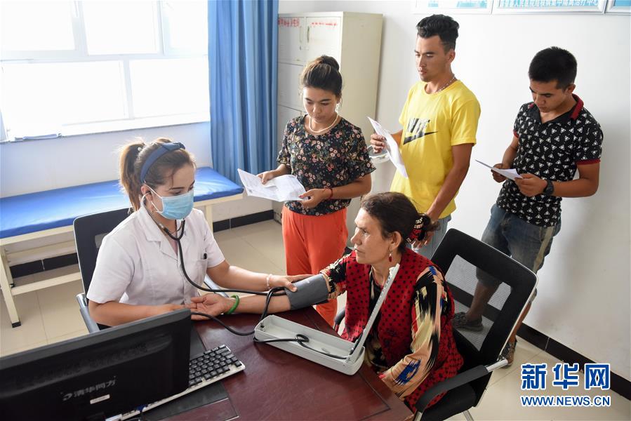 8月16日,在泽普县桐安乡卫生院,居民接受免费健康体检。 新华社记者 丁磊 摄