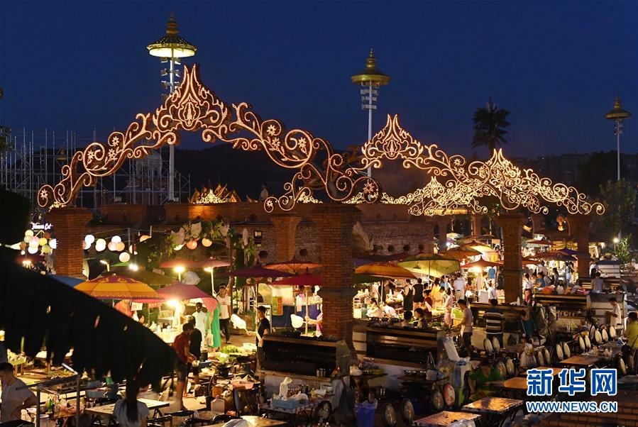 8月16日,在西双版纳傣族自治州景洪市,游客在澜沧江畔的夜市休闲购物。新华社记者 杨宗友 摄