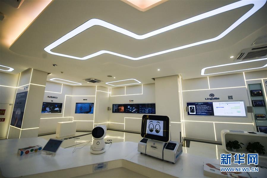 位于杭州未来科技城的人工智能小镇展厅展示入驻的创新型企业的高科技产品(6月6日摄)。新华社记者 徐昱 摄