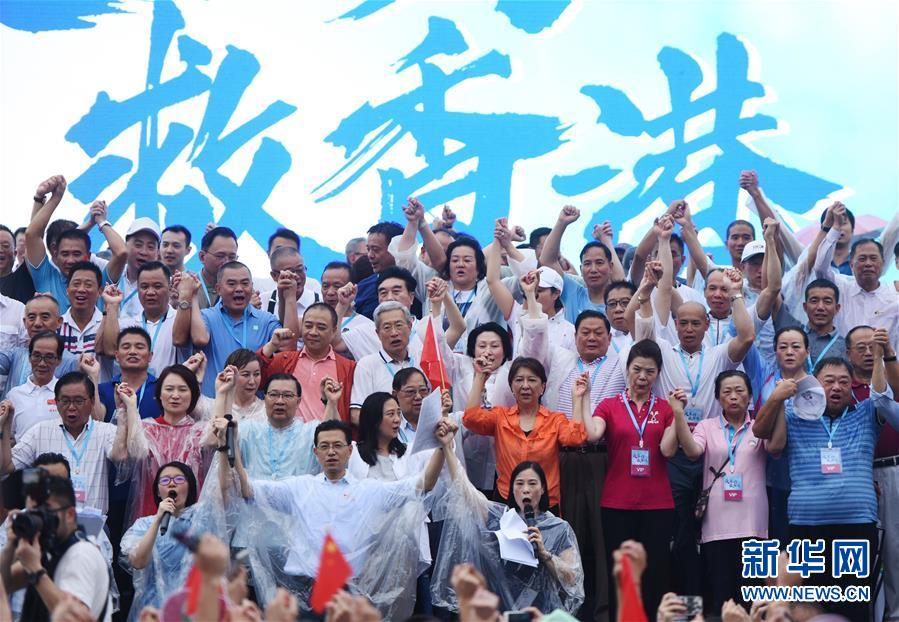 8月17日,香港各界人士在金钟添马公园举行“反暴力、救香港”集会。 新华社记者 王申 摄