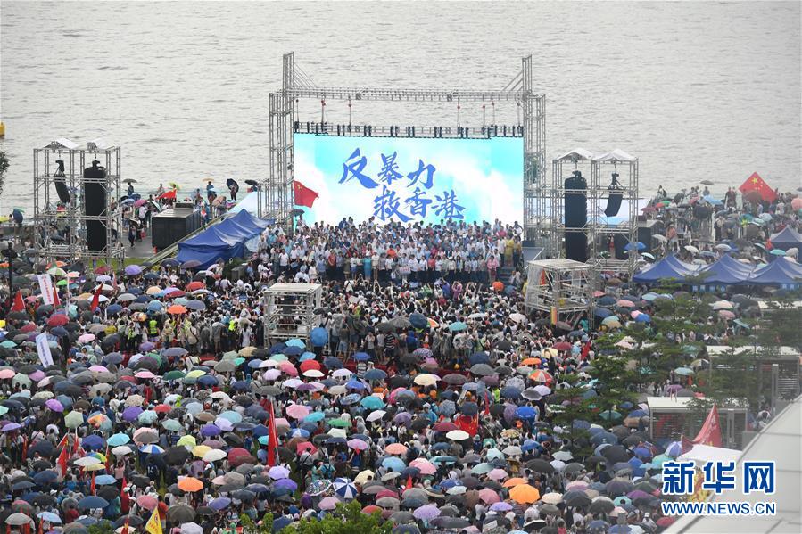 8月17日,香港各界人士在金钟添马公园举行“反暴力、救香港”集会。 新华社记者 吕小炜 摄
