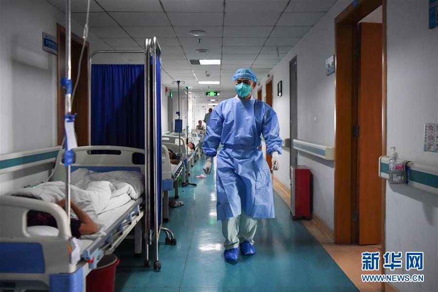 肖阳宝行走在湖南省胸科医院住院部的走廊上(8月14日摄)。 新华社记者 薛宇舸 摄