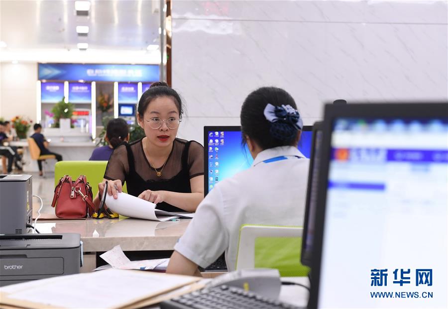 在平潭综合实验区行政审批服务中心“一窗通办”窗口,市民办理社保变更(7月26日摄)。 新华社记者 林善传 摄