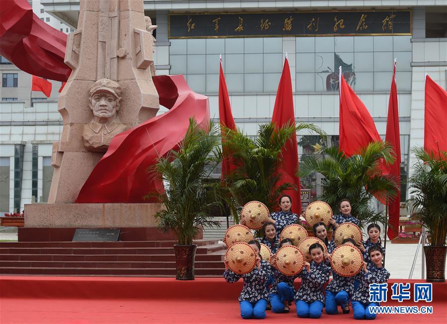 8月18日,来自甘肃日报社的工作人员表演舞蹈《万泉河水清又清》。 当日,“记者再走长征路”主题采访收官文艺活动在甘肃会宁举行。 6月11日至8月18日,中央宣传部组织开展了“壮丽70年·奋斗新时代——记者再走长征路”主题采访活动。 新华社记者 马宁 摄