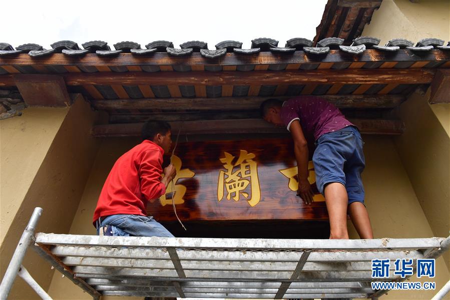 在广西融安县大良镇古兰村古兰屯,村民在修缮古民居(8月18日摄)。 新华社记者 黄孝邦 摄