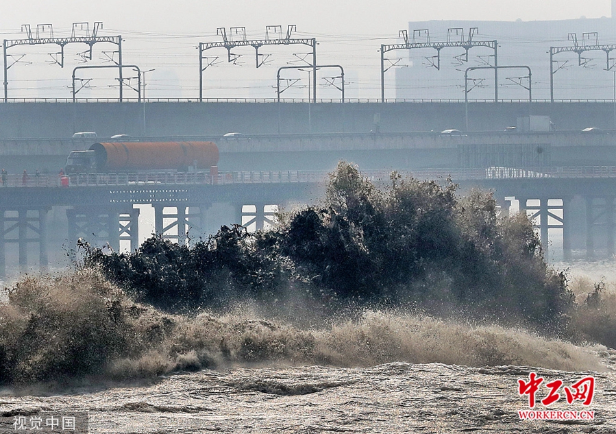 2019年8月18日,杭州,农历七月十八,钱塘江潮水从江面涌过,打在部分沿岸弯口处潮头拍岸溅起,气势煞是壮观,令等候多时的看客们惊呼不已。每年农历七月是钱塘江大潮的望汛大潮,有的年份潮水甚至高过当年的八月十八的大潮汛,十分凶险,因而在民间俗称其为“鬼王潮”。