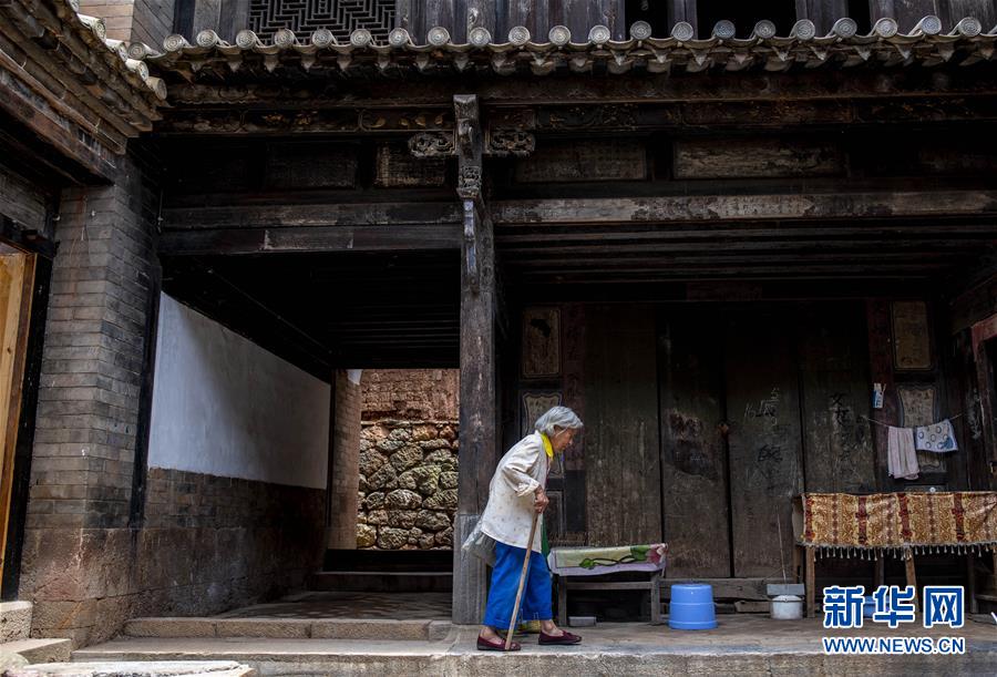 85岁的村民周秀芹走进位于石屏县异龙镇符家营村140号的家中(8月8日摄)。新华社记者 江文耀 摄