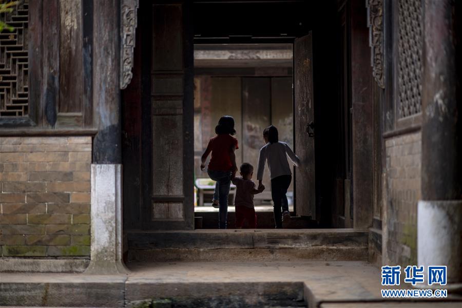 石屏县异龙镇符家营村的小朋友们在村里的老屋玩耍(8月8日摄)。新华社记者 江文耀 摄