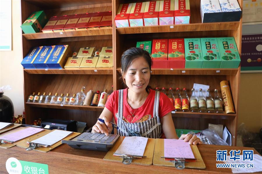 8月16日,在平山县西柏坡文旅小镇内,村民刘雅在自家农家乐内核算经营账单。新华社发(梁子栋摄)