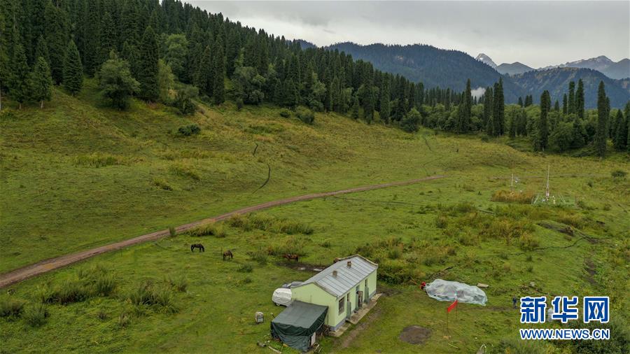 这是新疆巩留县阿尕森镇库尔德宁禁牧区管护站(8月16日无人机拍摄)。新华社记者胡虎虎摄