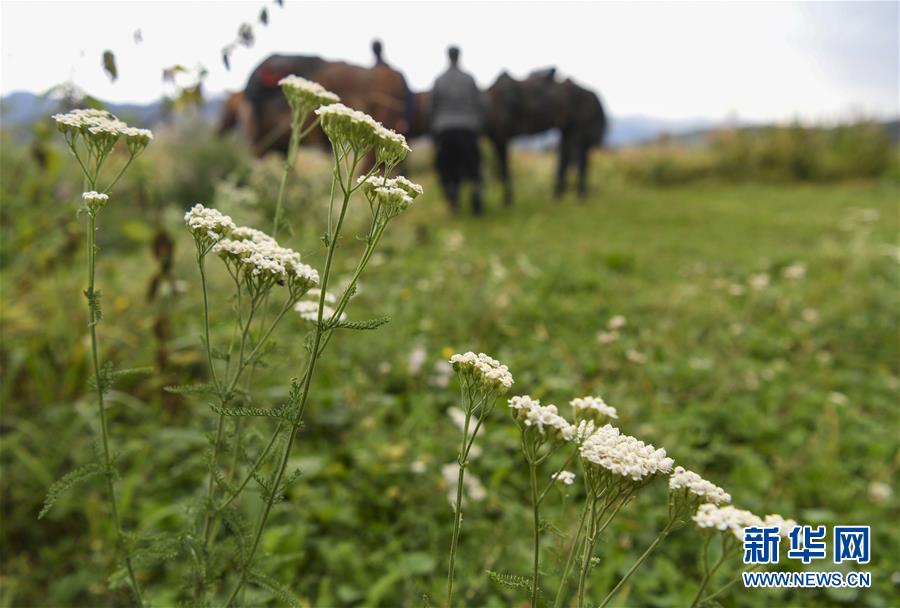 巴合提别克·塞依提与同伴们在巡逻途中休息(8月16日摄)。新华社记者胡虎虎摄