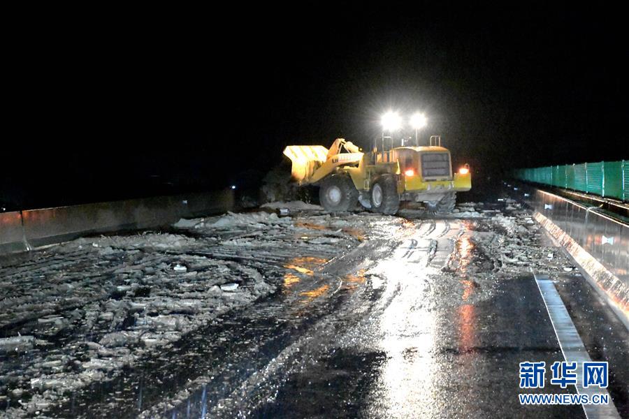 8月20日凌晨,救援人员抢修都汶高速板桥段。 8月20日凌晨2时许,四川省阿坝州汶川县因强降雨致多个乡镇不同程度发生山洪泥石流灾害,多地道路、电力、通讯中断,造成人员伤亡。1名消防员在救援中牺牲。 新华社发 (伍排勇 摄)
