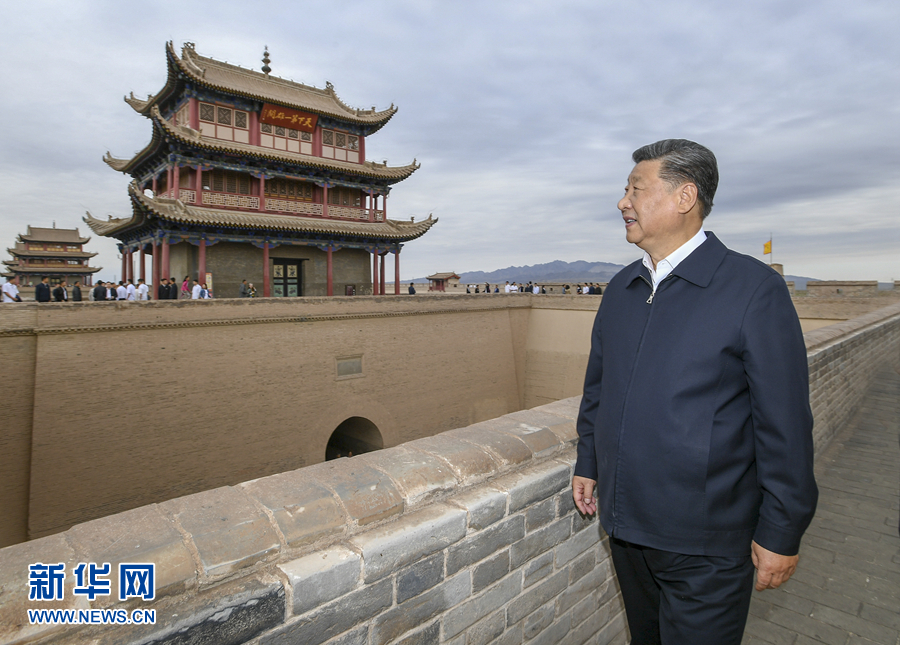 8月20日上午,中共中央总书记、国家主席、中央军委主席习近平来到嘉峪关关城,登上城楼察看关城整体面貌,听取河西走廊长城、关隘历史文化情况介绍。 新华社记者 谢环驰 摄