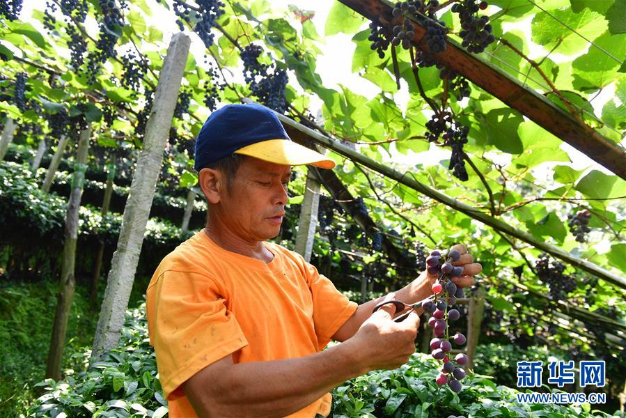 8月20日,在广西三江侗族自治县归东村,村民在采摘葡萄。 近年来,广西三江侗族自治县归东村以“合作社+基地+贫困户”模式,通过以奖代补、免费提供苗木并搭建葡萄架等办法,鼓励贫困户发展葡萄种植,目前全村葡萄种植面积已达1360亩。今年,归东村进一步改进葡萄种植技术,投入粤桂帮扶资金50余万元建设葡萄冷冻库,解决葡萄的贮藏难题,保障果农销路无忧,帮助群众增收脱贫。 新华社记者 黄孝邦 摄