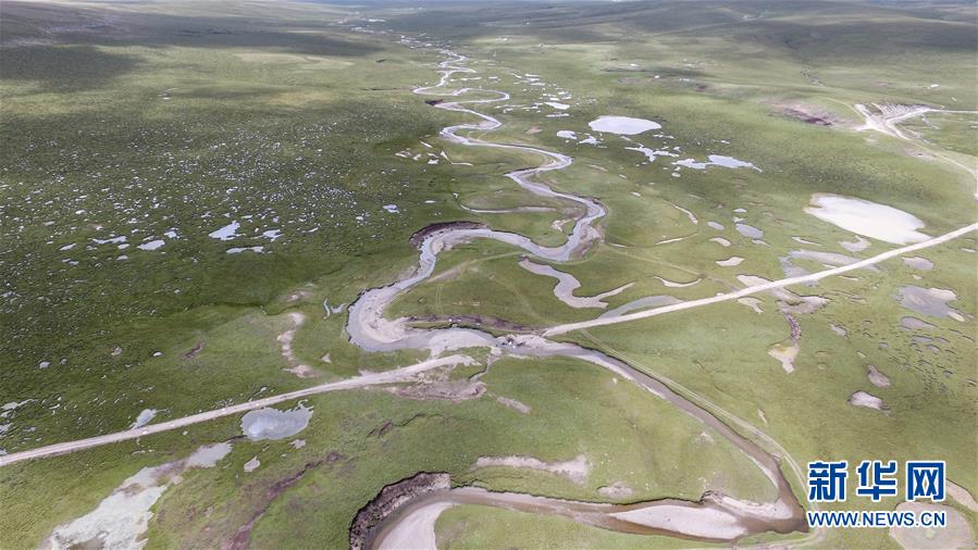 这是8月6日无人机拍摄的位于青海省玉树藏族自治州杂多县的长江南源当曲河道。新华社记者 吴刚 摄