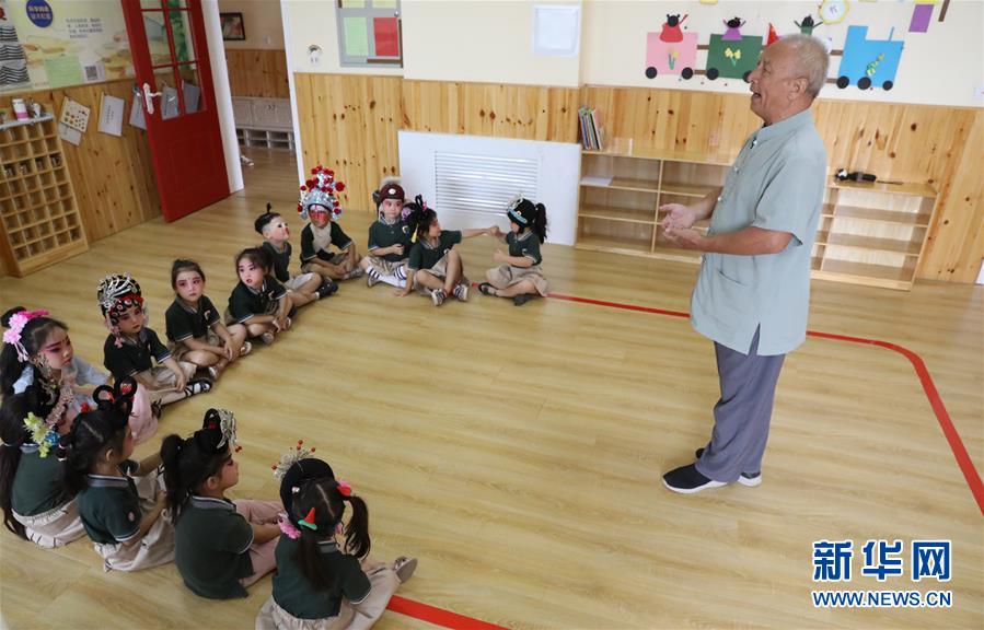 8月20日,在石家庄市井陉县亲亲宝贝幼儿园,河北省级非物质文化遗产项目微水丝弦代表性传承人王连柱给孩子们演唱丝弦。 微水丝弦属于河北石家庄地方戏曲,是河北省级非物质文化遗产项目,唱腔优美,戏装华丽,在当地深受百姓喜爱。近日,井陉县微水丝弦的艺人们走进当地幼儿园,向孩子们展示丝弦艺术,介绍戏曲基本知识,将民间艺术融入孩子们的心间。 新华社记者 赵丹惠 摄