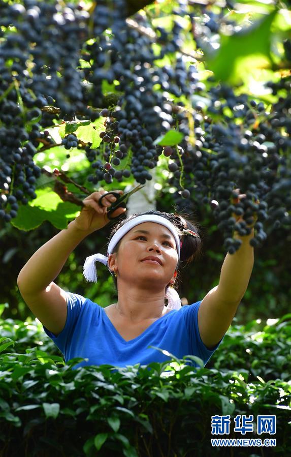 8月20日,在广西三江侗族自治县归东村,村民在采摘葡萄。 近年来,广西三江侗族自治县归东村以“合作社+基地+贫困户”模式,通过以奖代补、免费提供苗木并搭建葡萄架等办法,鼓励贫困户发展葡萄种植,目前全村葡萄种植面积已达1360亩。今年,归东村进一步改进葡萄种植技术,投入粤桂帮扶资金50余万元建设葡萄冷冻库,解决葡萄的贮藏难题,保障果农销路无忧,帮助群众增收脱贫。 新华社记者 黄孝邦 摄