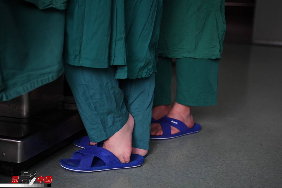 10:30,手术多的时候,一天要站十几个小时。累了,只能默默换个站姿。新华网发 温沁 刘子凌摄