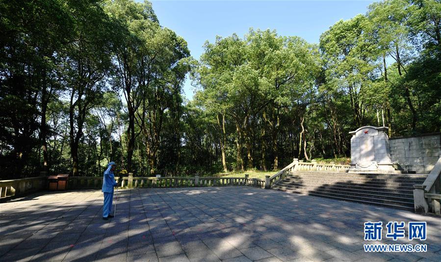 7月26日,在儿子的陪同下,程樟柱来到位于南昌市的方志敏烈士陵园,在方志敏的墓前敬礼。新华社记者 胡晨欢 摄