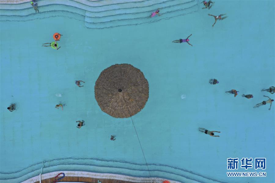 游客在上思县十万大山布透温泉森林生态文化旅游核心示范区亲水玩耍(8月20日无人机拍摄)。 近年来,广西上思县依托境内的自然资源优势,大力推进农旅融合发展,在不断完善基础设施建设的基础上,规划建设一批农家乐、康养农庄、民宿项目,助力当地脱贫攻坚工作。 当地在十万大山国家森林公园外围打造上思县十万大山布透温泉森林生态文化旅游核心示范区,通过土地流转、吸收贫困村贫困户入股、吸纳当地村民就业等方式帮助当地贫困村、贫困户实现增收。2018年以来,当地已有24个贫困村和600多户建档立卡贫困户与旅游公司签订了投资入股经营协议,累计获得分红400多万元。 新华社记者 曹祎铭 摄