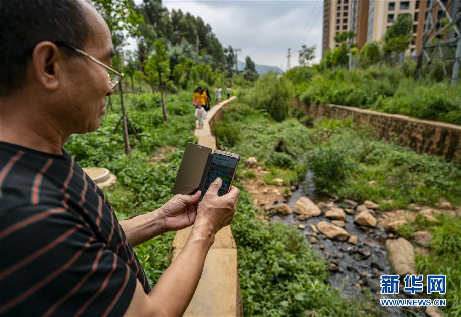 昆明市五华区普吉街道普吉社区的一名河道专管员在巡查河道(8月20日摄)。新华社记者 江文耀 摄