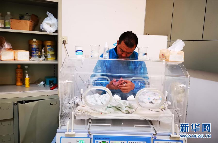 8月21日,饲养员在照顾新出生的大熊猫宝宝。 8月20日凌晨,位于四川卧龙的中国大熊猫保护研究中心核桃坪基地传来好消息,野外引种大熊猫“草草”顺利产下了一对雄性双胞胎宝宝。 新华社发