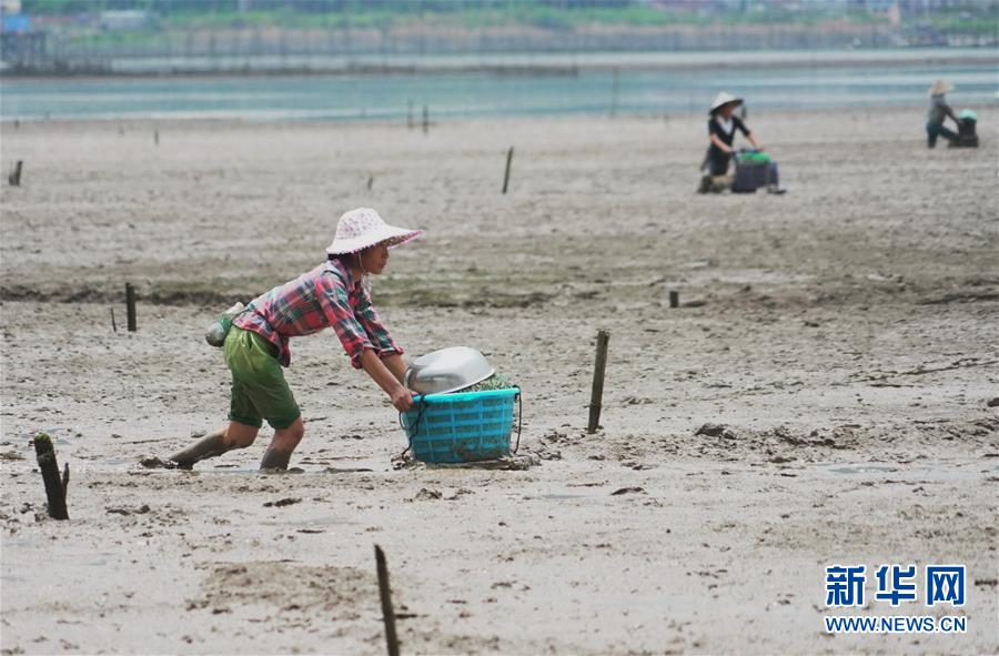 8月22日,村民将收获的海蛏推向岸边。 福建省福安市溪尾镇溪邳村是“连家船民”聚集的纯渔业村。近年来,该村立足渔村实际,围绕特色产业振兴和美丽乡村建设,大力发展水产养殖、内海捕捞、海产品销售等,带动渔民增收致富,加快推进乡村振兴。 新华社记者 林善传 摄
