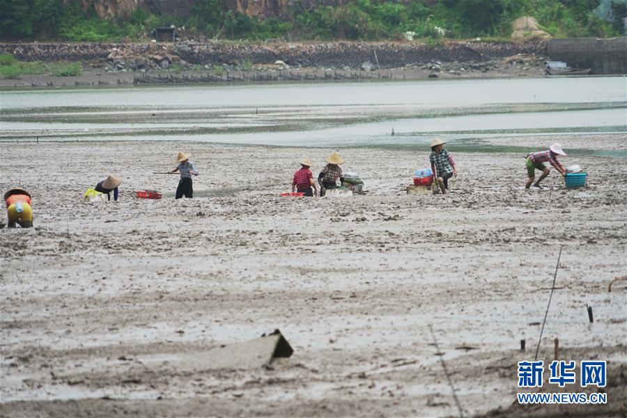 8月22日,村民在村前滩涂上采海蛏。 福建省福安市溪尾镇溪邳村是“连家船民”聚集的纯渔业村。近年来,该村立足渔村实际,围绕特色产业振兴和美丽乡村建设,大力发展水产养殖、内海捕捞、海产品销售等,带动渔民增收致富,加快推进乡村振兴。 新华社记者 林善传 摄