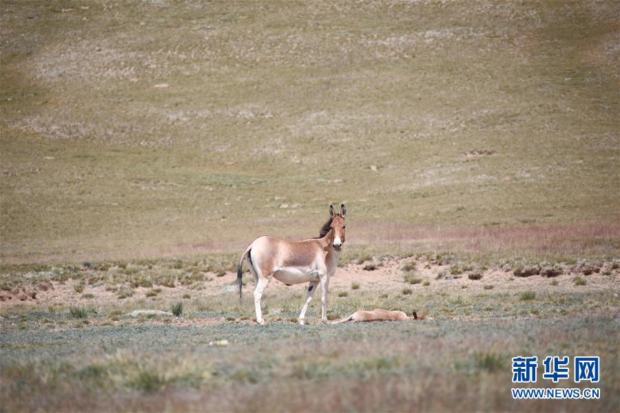 母藏野驴守护在已经死去的小驴身边(8月20日摄)。新华社记者 刘诗平 摄