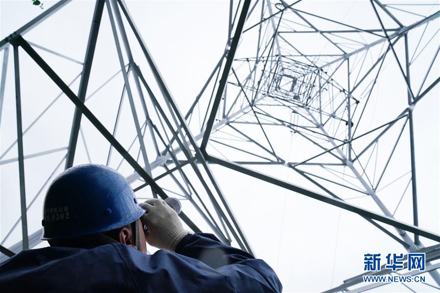 工作人员在巡检110千伏布黑线(8月21日摄)。 新华社记者 王建威 摄