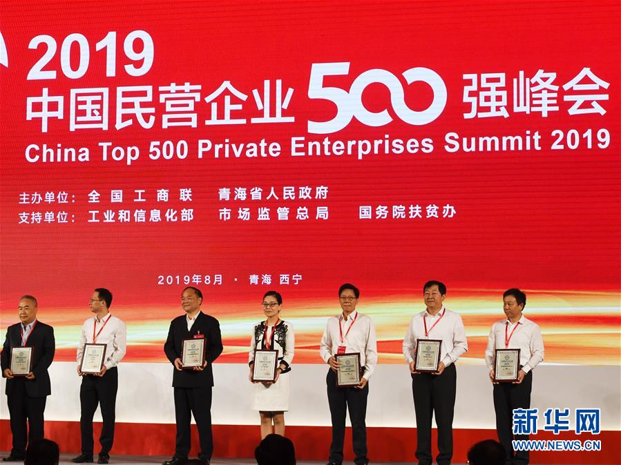 8月22日,“2019中国民营企业500强峰会”在青海西宁开幕,2019“中国民营企业500强”“中国民营企业制造业500强”“中国民营企业服务业100强”榜单正式发布。这是部分“2019中国民营企业500强”企业代表领取证书。 新华社记者 张龙 摄