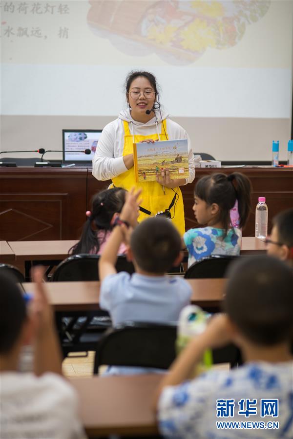 8月22日,官渡区闰土青少年服务中心的工作人员给孩子们介绍“二十四节气”故事。 当日,昆明市官渡区六甲街道海华社区组织开展“中国传统文化——二十四节气”学习活动,通过讲解节气故事和制作手工等方式,让社区里的孩子们学习传统节气知识,丰富孩子们的假期生活。 新华社记者 胡超 摄