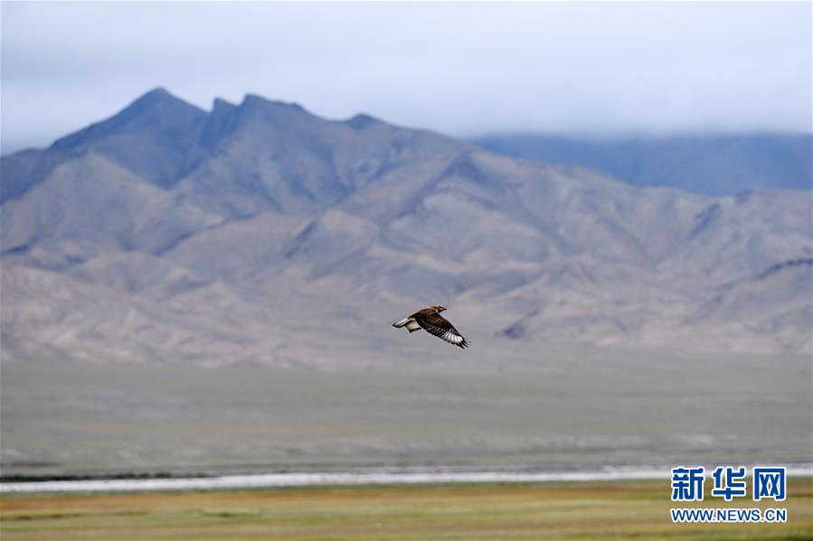 8月22日,一只大鵟在甘肃阿克塞大哈尔腾河畔飞翔。 甘肃省酒泉市阿克塞哈萨克族自治县位于祁连山西部,野牦牛、野骆驼、藏原羚、盘羊、雪豹等数十种野生动物在此栖息繁衍。近年来,该县通过设立自然保护区和野生动物救护站、实施草原禁牧减畜政策、加大非法狩猎惩治力度等举措,使得境内生态环境不断改善,野生动物种群数量逐步增加。 新华社记者 马宁 摄