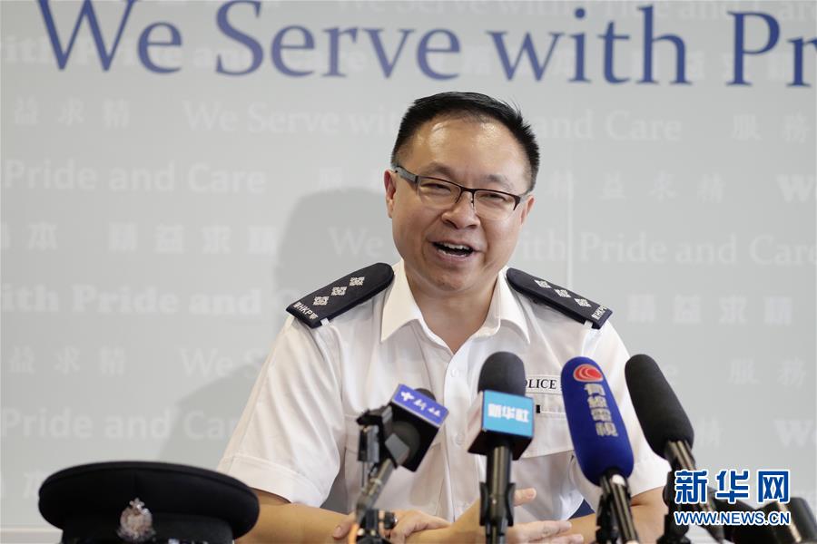 在香港警察总部,香港警务处沙田警区行动主任总督察、谈判专家林景升接受记者采访(8月21日摄)。 新华社记者 王申 摄
