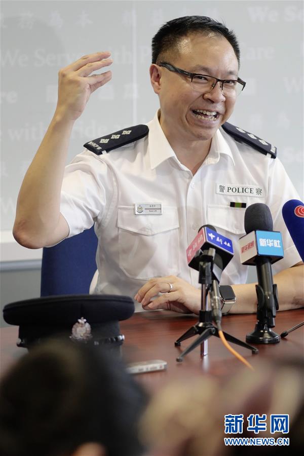 在香港警察总部,香港警务处沙田警区行动主任总督察、谈判专家林景升接受记者采访(8月21日摄)。 新华社记者 王申 摄