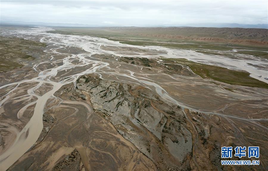 8月22日在甘肃阿克塞阿勒腾乡无人机拍摄的大哈尔腾河。 由于近期降水较多,位于甘肃省酒泉市阿克塞哈萨克族自治县境内的大哈尔腾河水量丰沛,河道蜿蜒曲折,空中俯瞰颇为壮观。大哈尔腾河发源于甘青交界处的祁连山腹地,以冰川和积雪融水为主要补给。 新华社记者 马宁 摄