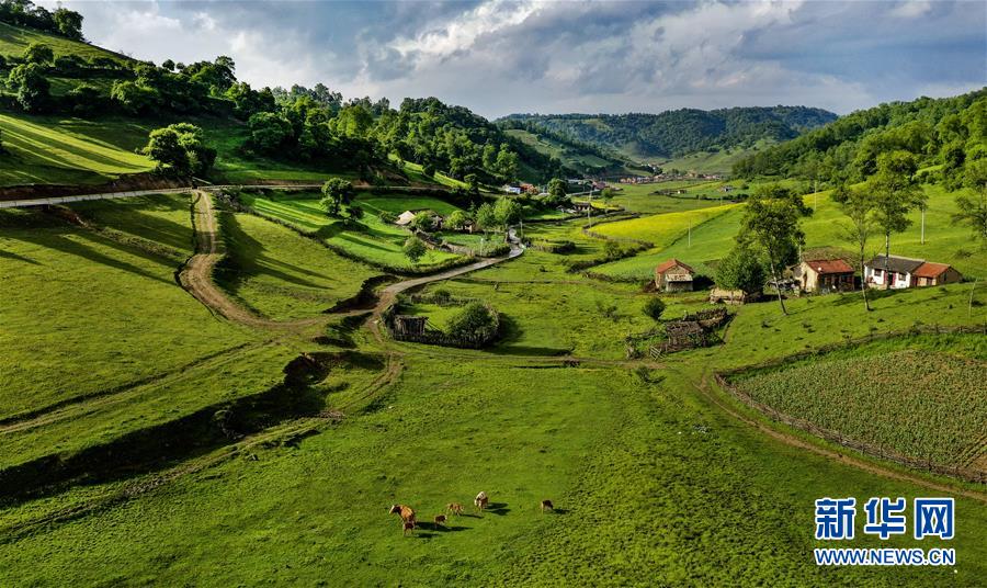 位于陇县境内的关山草原景色(6月12日无人机拍摄)。 新华社记者 陶明 摄