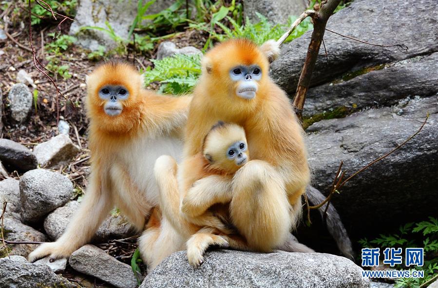秦岭金丝猴在佛坪县熊猫谷内休憩(2018年8月3日摄)。大熊猫、朱鹮、金丝猴、羚牛被誉为“秦岭四宝”。 新华社记者 刘潇 摄